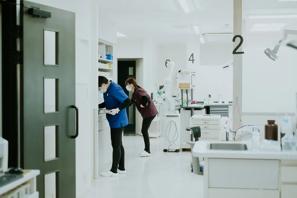 院内感染対策を徹底するために、「ウォッシャーディスインフェクター(自動洗浄機)」と「クラスB滅菌器」(世界でもっとも厳しいヨーロッパ基準)を導入しています。消毒室は不潔と清潔ゾーンに区分し、どうしても使い捨てできない器具を消毒・滅菌しています。なぜこれらの器械を導入してバリアフリーの診療室にしたのか? 「院内改装とヨーロッパ型歯科診療」をぜひご覧ください。